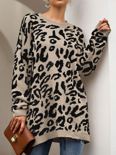 Leopard Round Neck Tunic Sweater