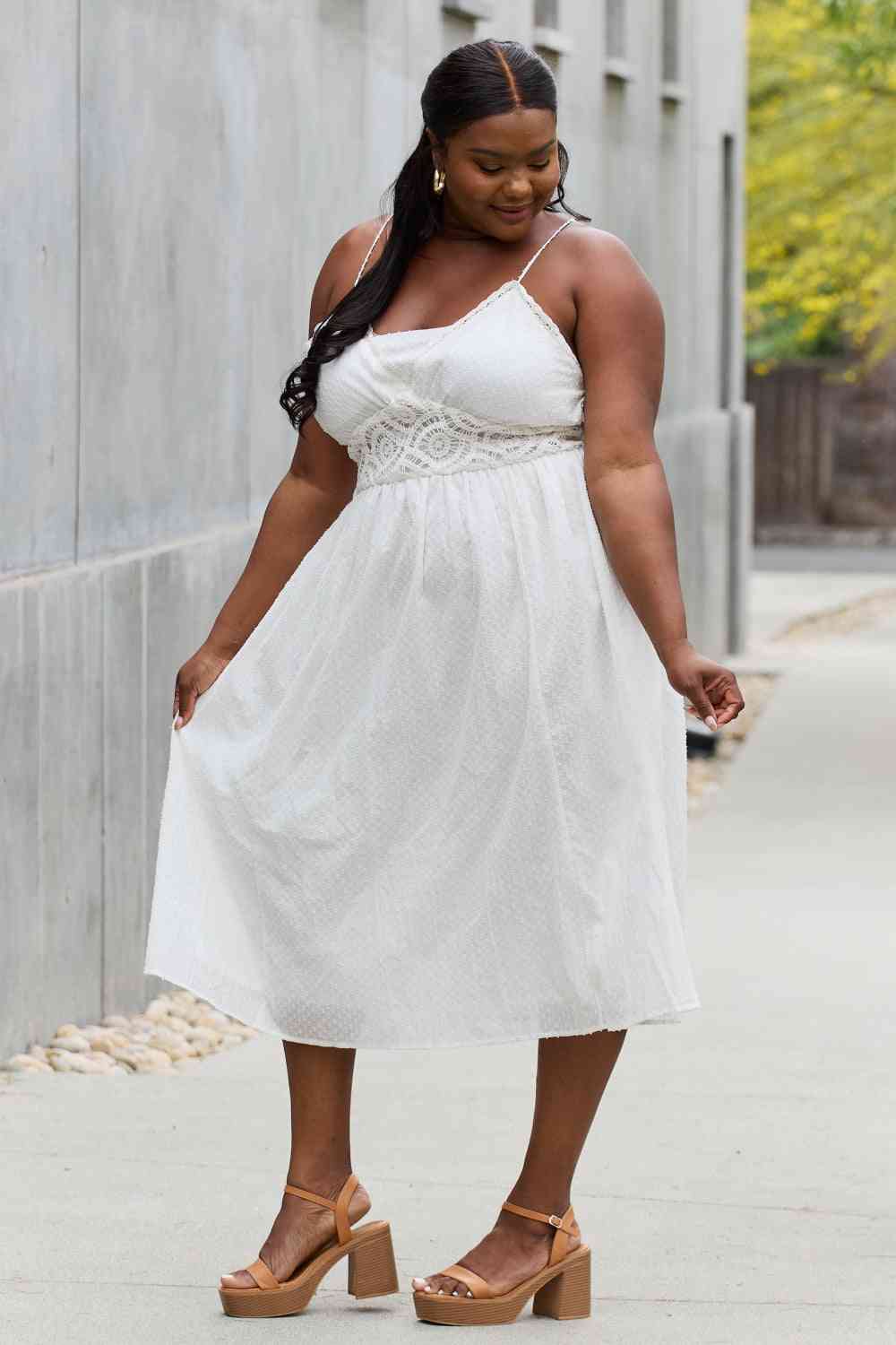 White Birch Full Size Lace Detail Sleeveless Lace Midi Dress
